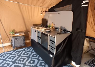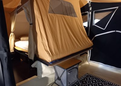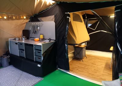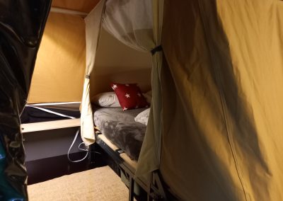 Neben dem komfortablen Bett verfügt der Novist über eine praktische, feste Küche mit einem Kühlschrank, der von vorne öffnet und somit mehr Komfort bietet als die herkömmlichen Kühlboxen. Wie von Smitveld zu erwarten, lässt sich das Zelt gut straff spannen, was für eine stabile und robuste Struktur sorgt.